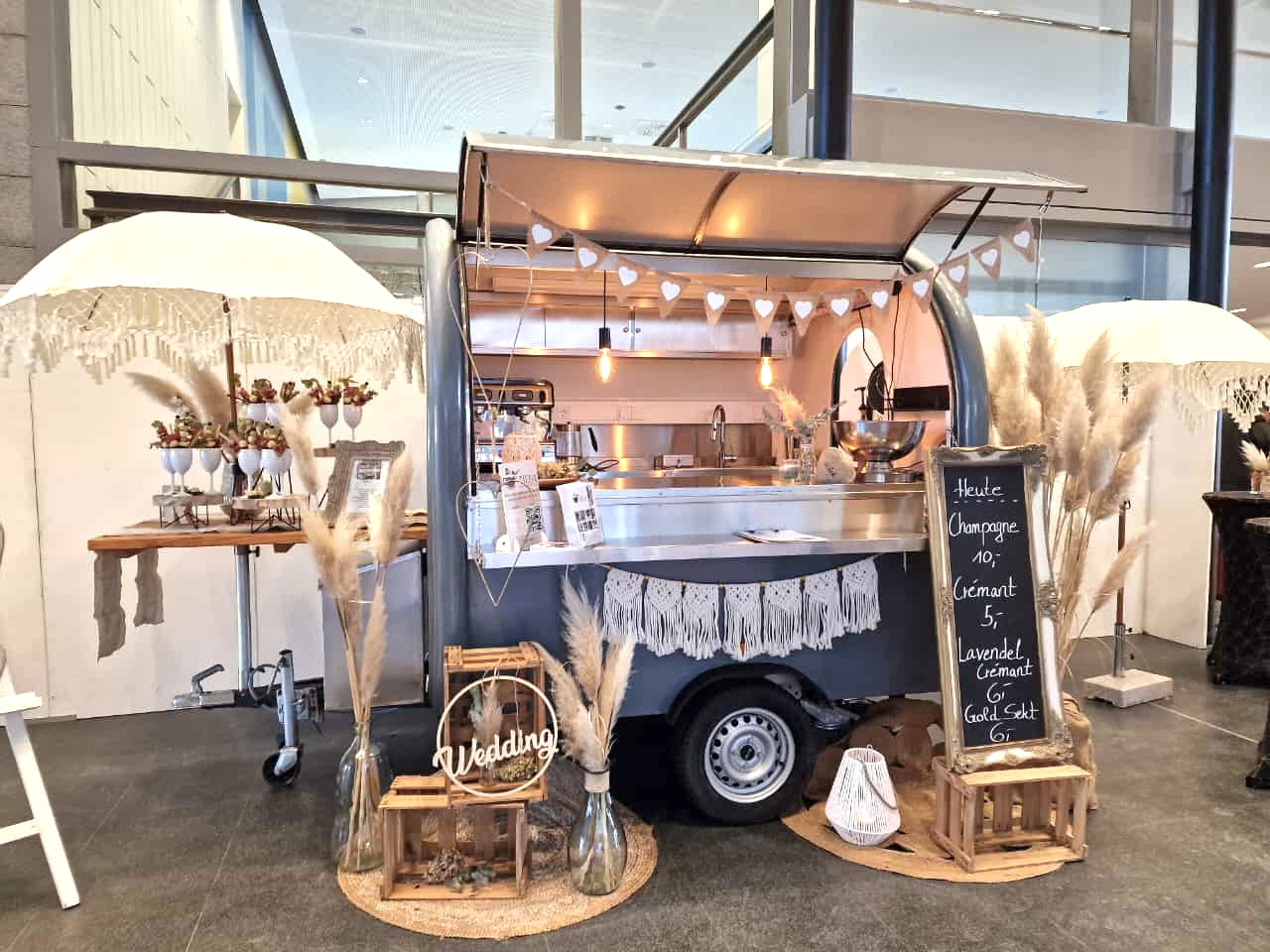 Inkl. Stehtisch am Wagen mit SonnenschirmÂ