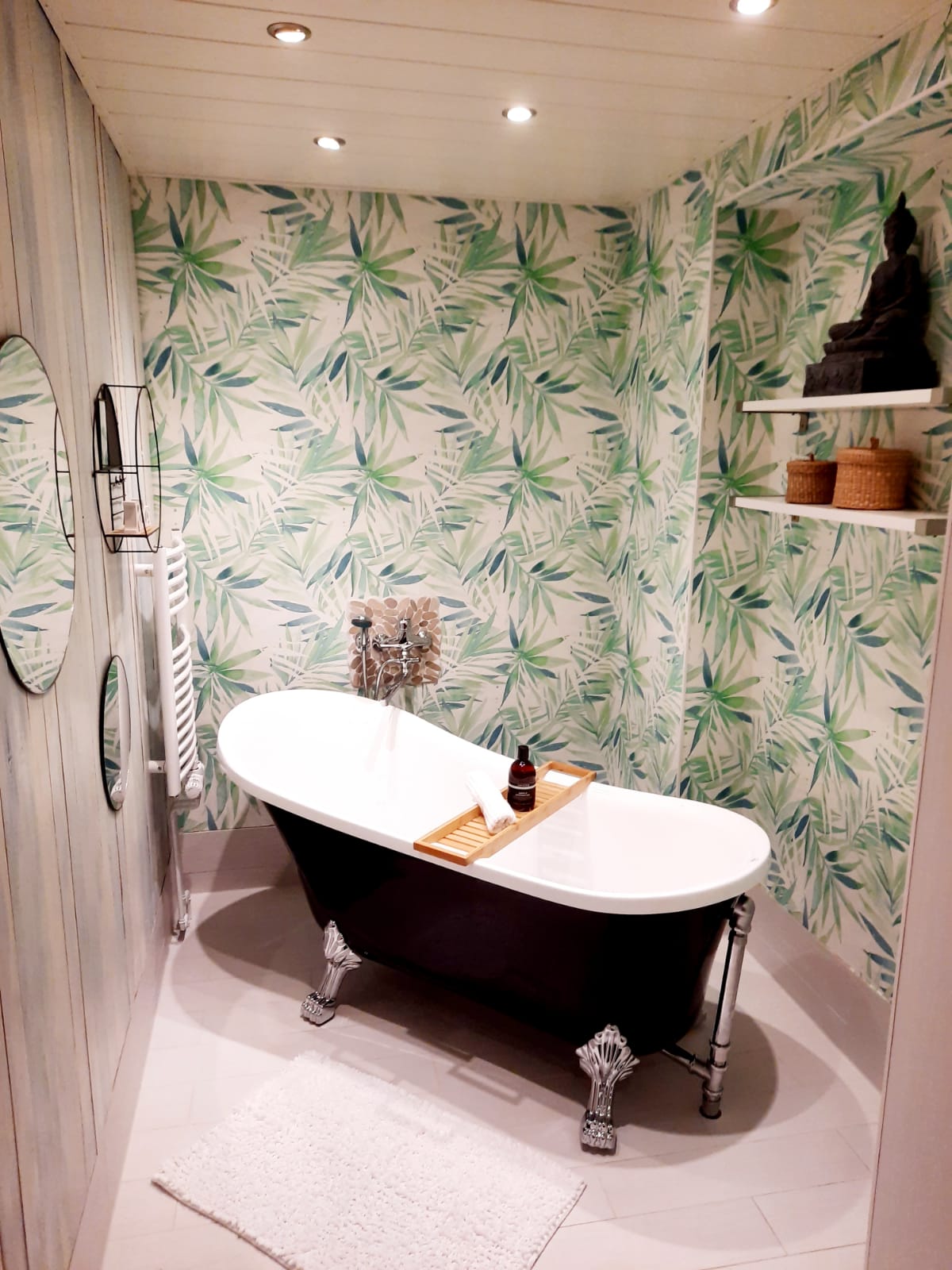 Eine Wärmekabine für den Wellness Abend. Freistehende Badewanne zum Relaxen und Erholen.