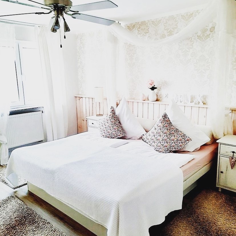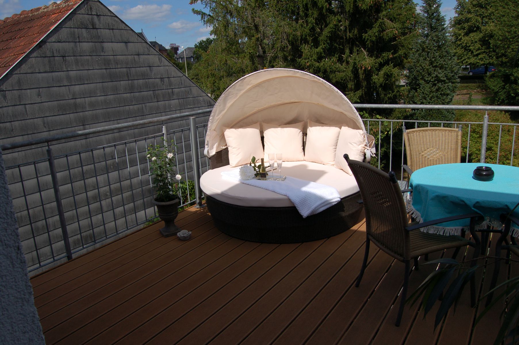 Das Zimmer "Himmelreich" verfügt über einen nutzbaren großen Balkon,